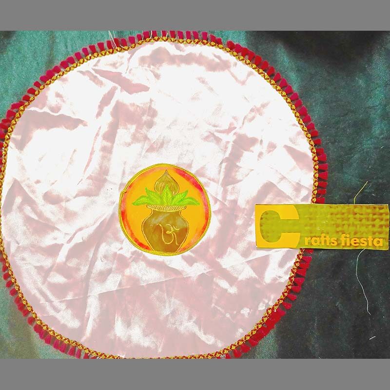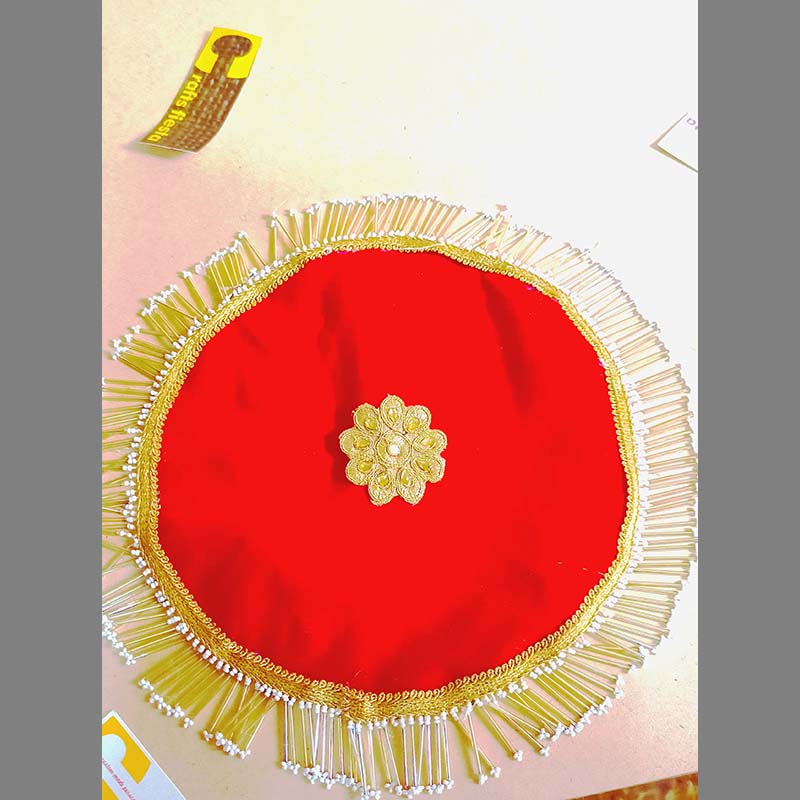 A 60cm x 60cm circular red velvet cloth piece hand painted with customised ritual symbol and laced borders, adding value to the gifts that are covered with it.