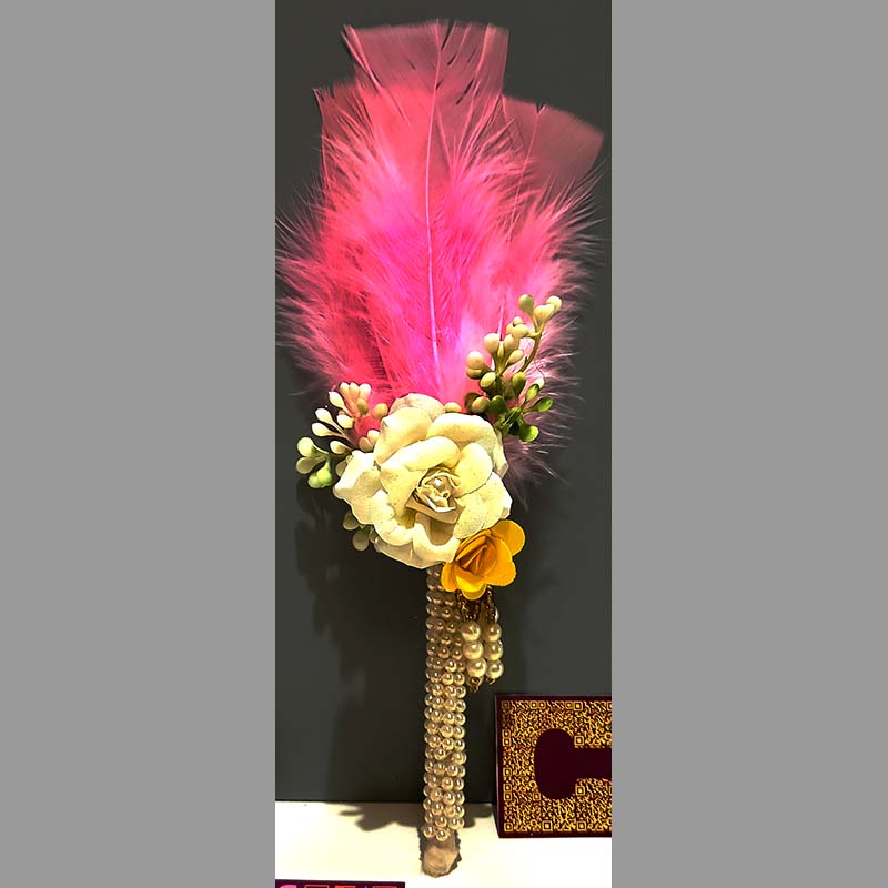 Pearl laced flowers & feathers decorated Welcome greeting marking ( tilak ) stick ( set of 2 units)