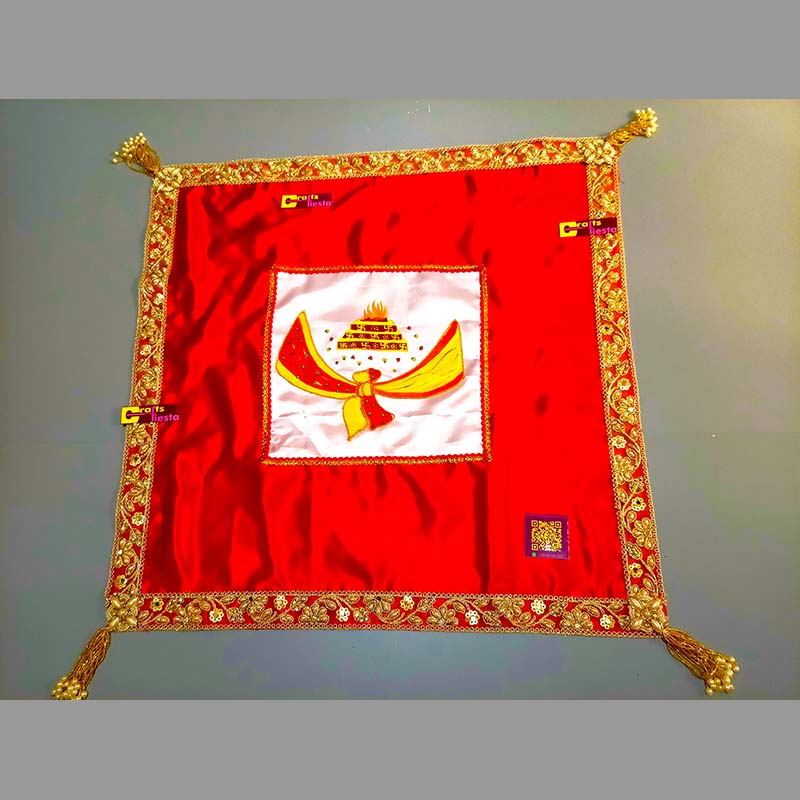 A 60cm x 60cm circular satin cloth piece hand painted with customised ritual symbol and laced borders, adding value to the gifts that are covered with it.